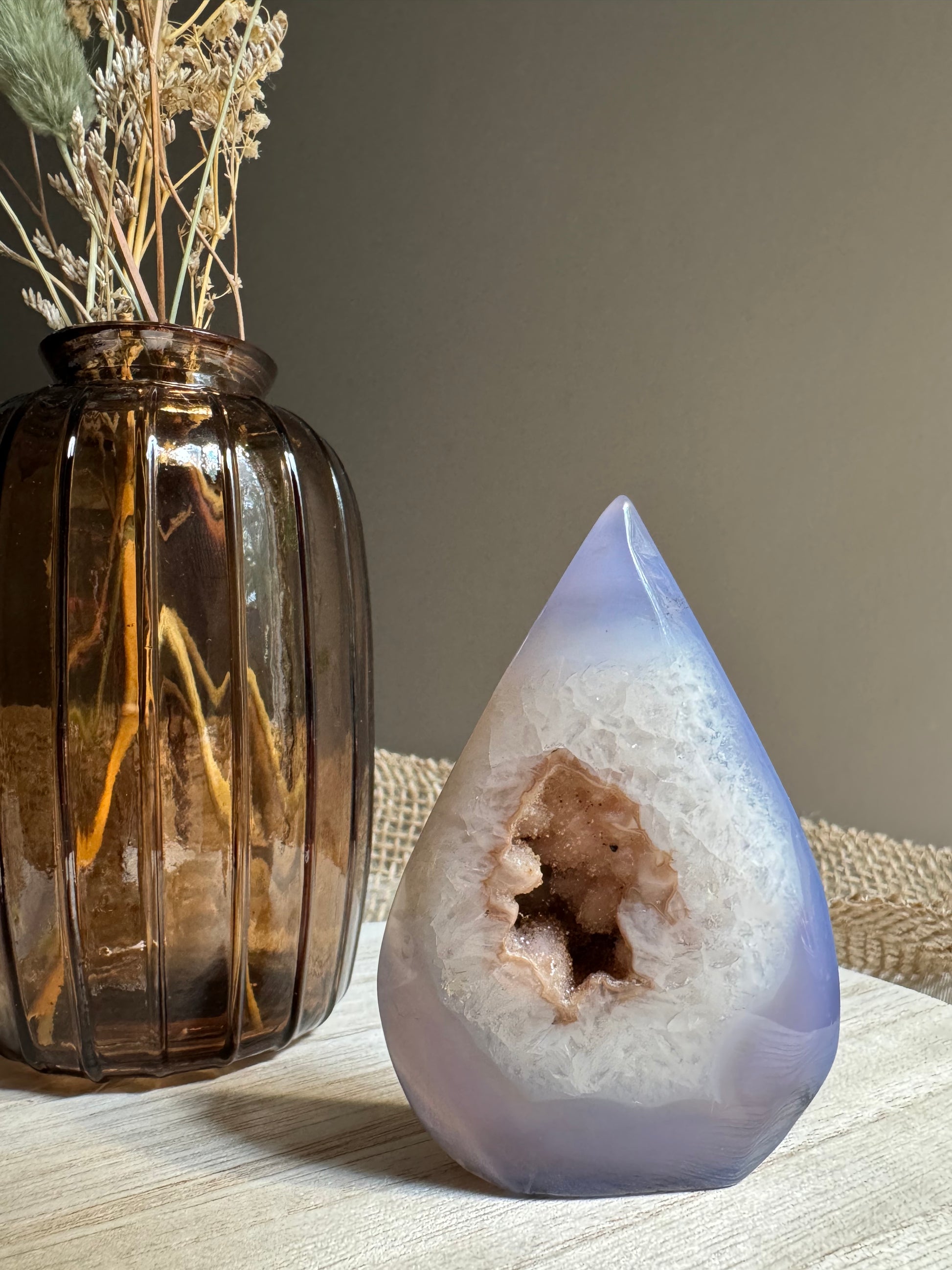 Larme d'agate bleue avec druzy.